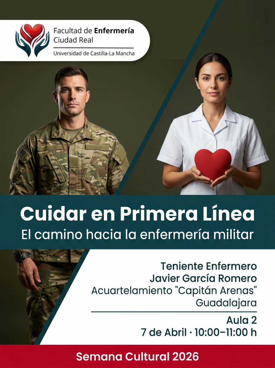 Con motivo de la Semana Cultural, te invitamos a la charla “Cuidar en Primera Línea: el camino hacia la Enfermería Militar”, una oportunidad para descubrir cómo la vocación de cuidar se une al servicio en primera línea. Conoce de cerca la formación, las oportunidades profesionales y las experiencias reales de quienes ejercen la Enfermería Militar, una carrera marcada por el compromiso, los valores y el crecimiento personal.