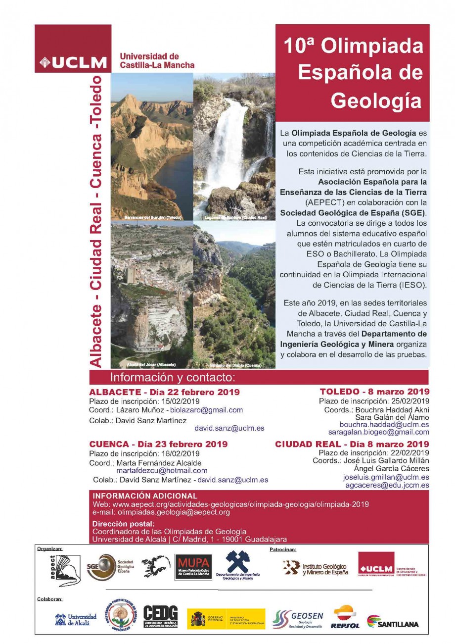 Este año 2019, en las sedes territoriales de ALBACETE, CIUDAD REAL, CUENCA y TOLEDO, la Universidad de Castilla-La Mancha a través del Departamento de Ingeniería Geológica y Minera organiza y colabora en el desarrollo de las pruebas.